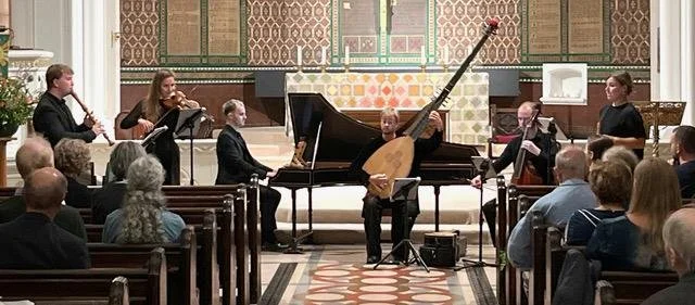 This year’s Proms season began in fine style. On Saturday 13th September, our Artistic Director Yoon Chung led a brilliant trio through chamber pieces by Mozart and Brahms, and on Sunday 14th the sparkling baroque sextet Apollo’s Cabinet (below) delivered a scintillating programme showing how composers like Bach, Handel and Telemann borrowed material from each other – and themselves. They even managed to work in 20th-century tunes from Grease and the Simon and Garfunkel songbook.